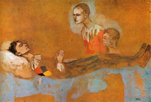 Ao chegar em Barcelona Picasso se deparou com um tal de círculo modernista vindo de Paris que rondava a cidade. Picasso respirou esse ar de rebelião e liberdade e gostou. Começou a frequentar o estabelecimento chamado Els Quartre Gats  e aos 16 anos preparou sua primeira exposição com grande influencia de Ramon Casas que por dua vez se inspirou no francês Henri de Toulouse Lautrec. Em 1904 Picasso apos varias visitas se fixa na França onde havia o centro da boemia e vanguarda, vivendo entre escritores, pintores, atores e modelos.